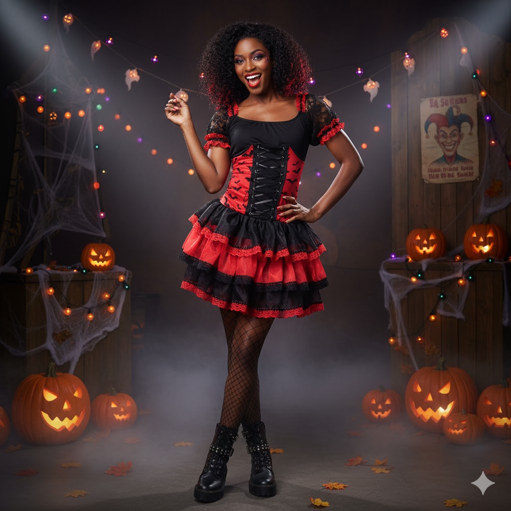 Descrição do Produto: Bruxa Corpete Morcegos Vermelho