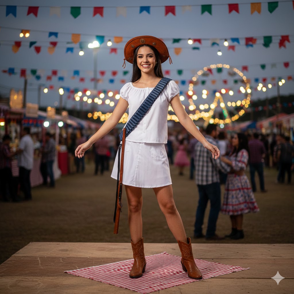 Descrição de Acessórios: Saia, Blusa, Cartucheira, Espingarda e Chapéu.
