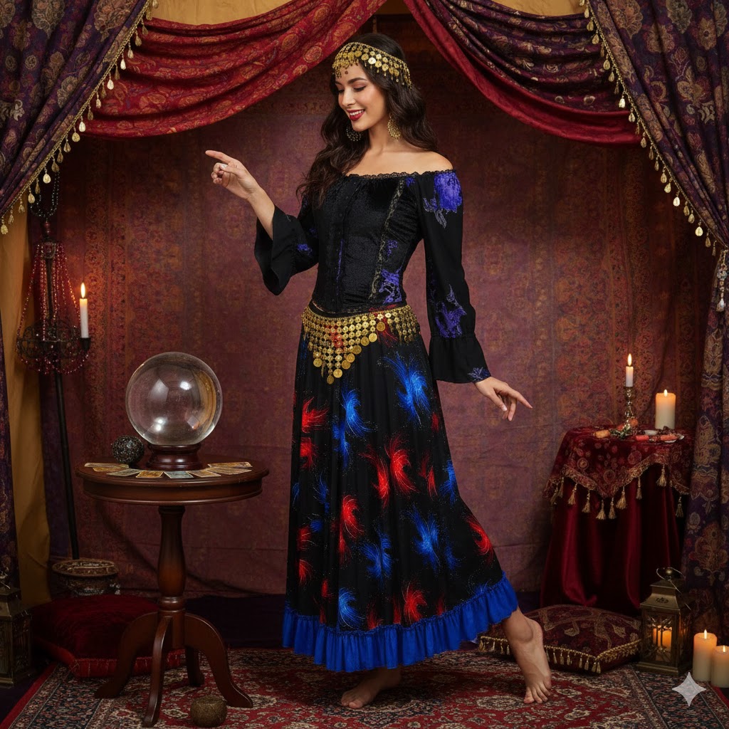 Descrição de Acessórios: Saia, Blusa, Cinto e Tiara