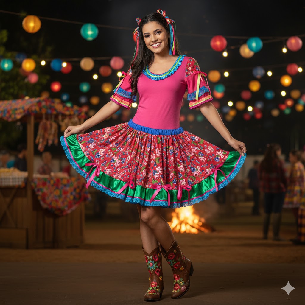 Descrição do Produto: Cojunto Junino Luxo Florido