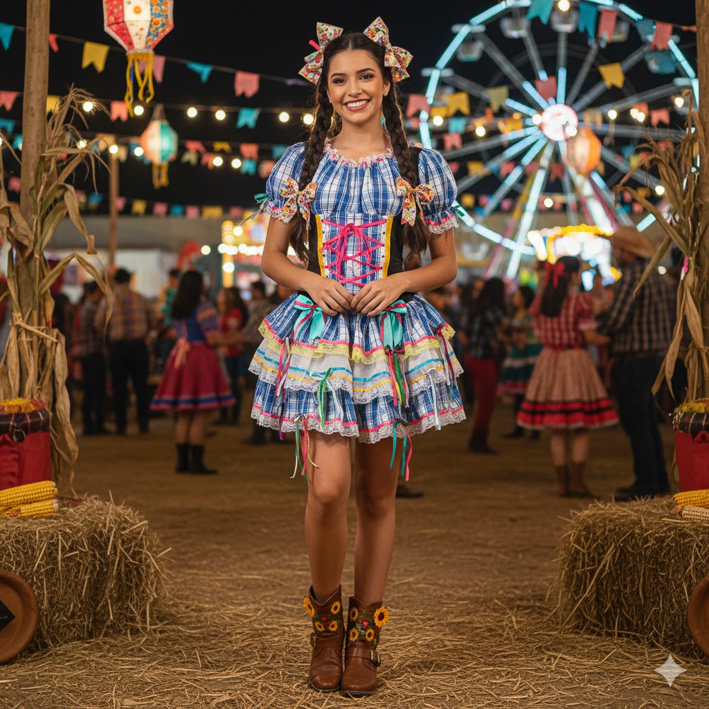 Descrição do Produto: Conjunto Junino Luxo Letícia