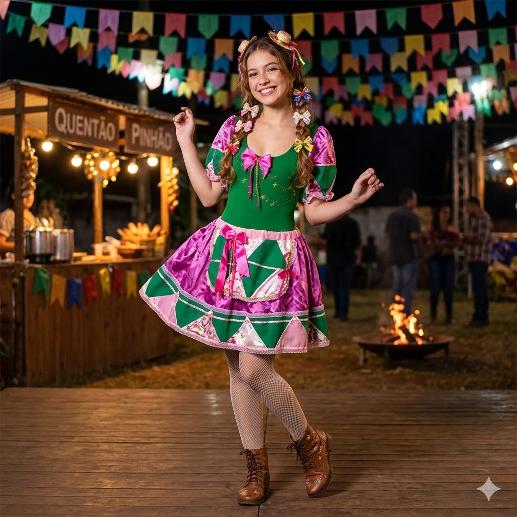 Descrição do Produto: Conjunto Junino Verde com Retalhos