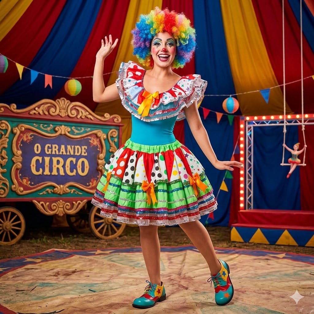 Descrição do Produto: Palhaça Conjunto Colan com Babados