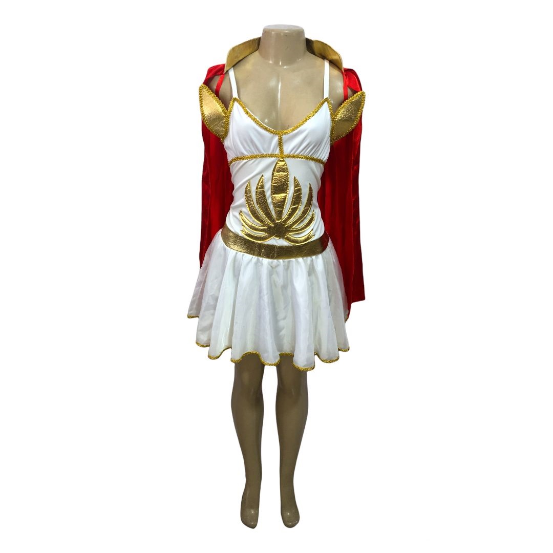 Descrição de Acessórios: Vestido, Capa, Braceletes, Cinto e Tiara.