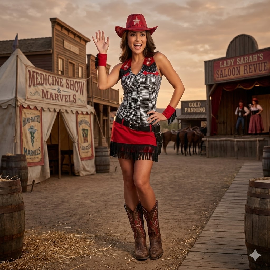 Descrição de Acessórios: Vestido, Cinto, Braceletes e Chapéu