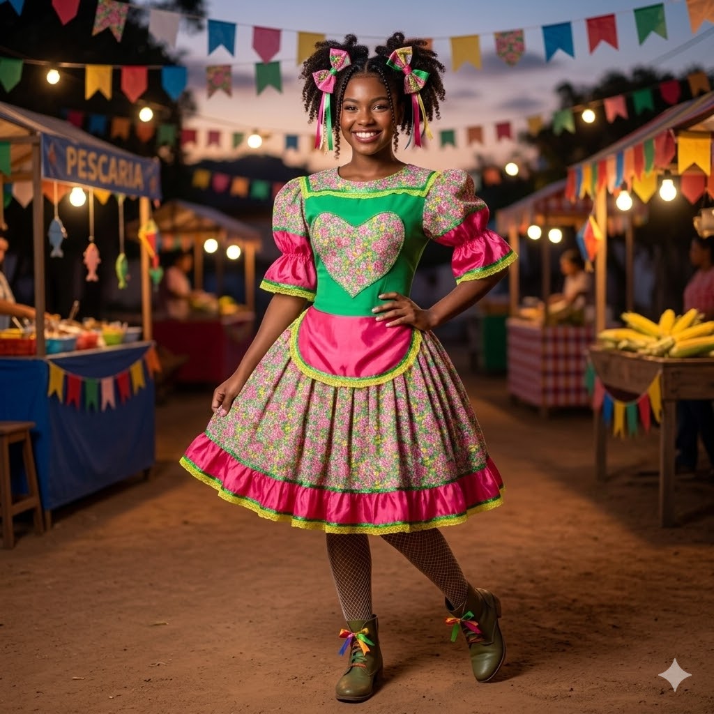 Descrição do Produto: Vestido Junino com Coração Florido