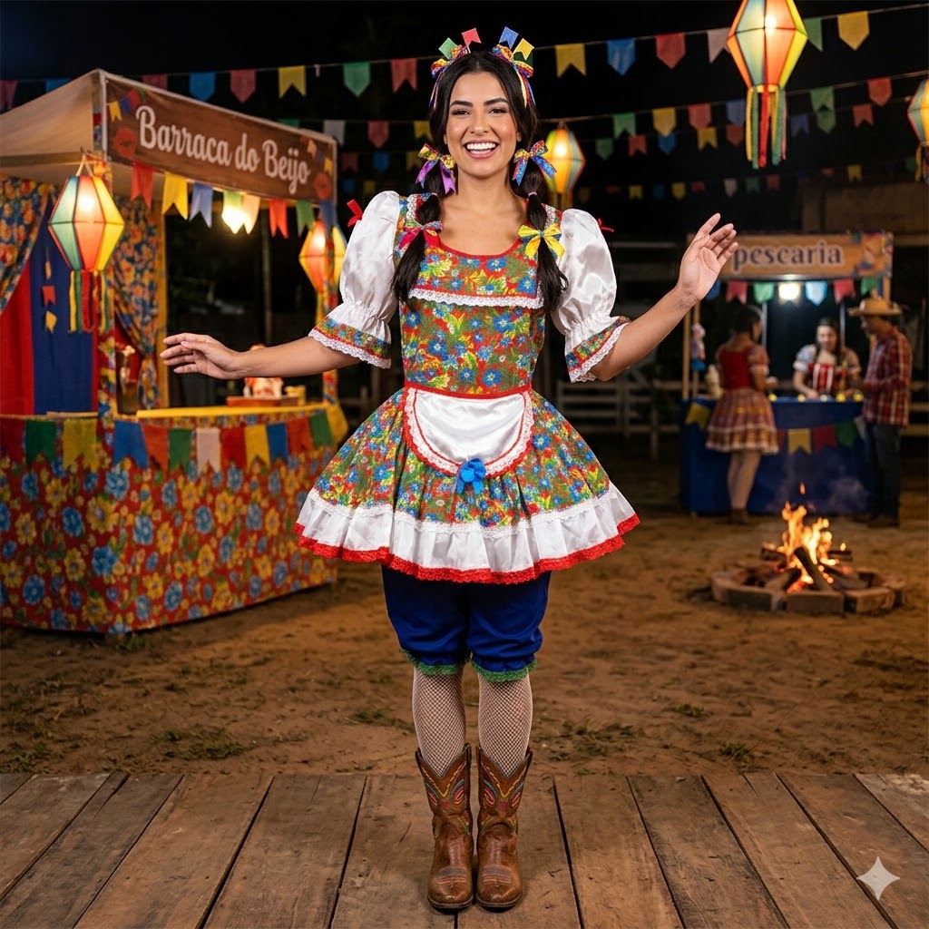 Descrição do Produto: Vestido Junino Curto Avental Branco