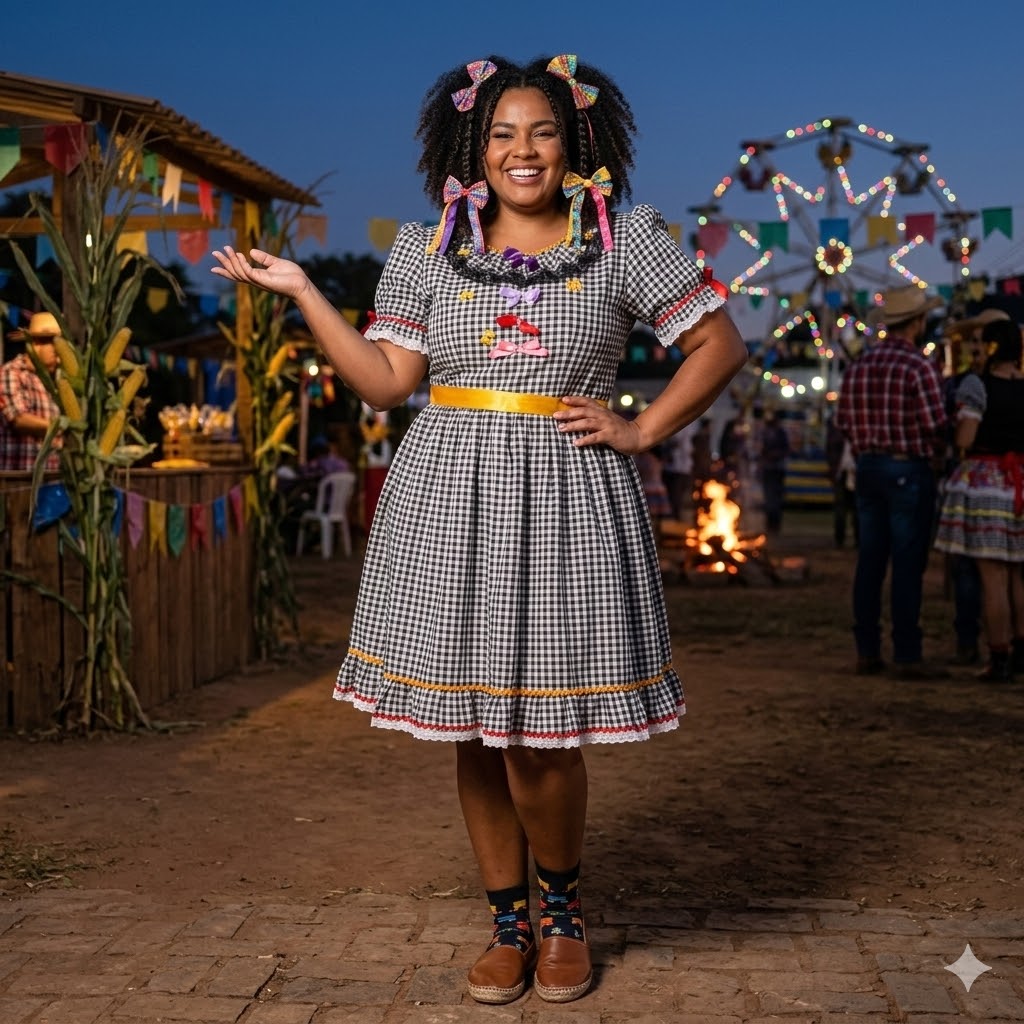 Descrição do Produto: Vestido Junino Lacinhos Xadrez