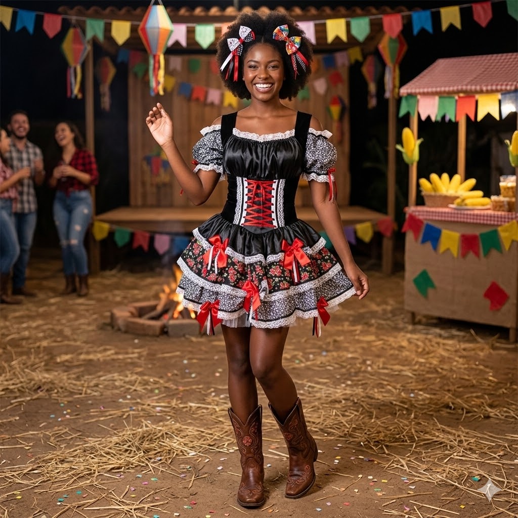 Descrição do Produto: Vestido Junino Luxo Ajustável em Cetim