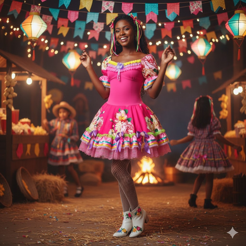 Descrição do Produto: Vestido Junino Luxo Florido com Bojo