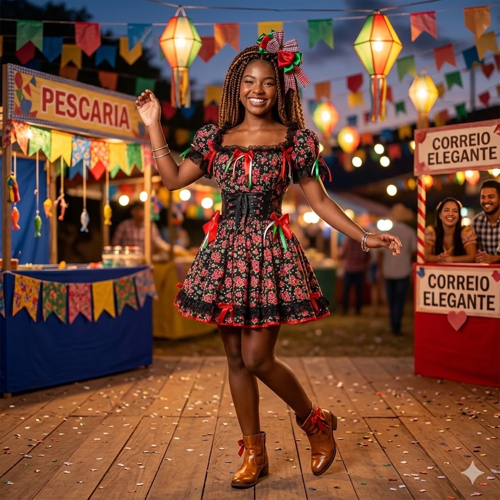 Descrição do Produto: Vestido Junino Luxo Preto