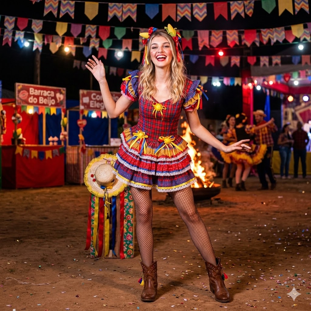Descrição do Produto: Vestido Junino Super Luxo Brenda Mini Saia