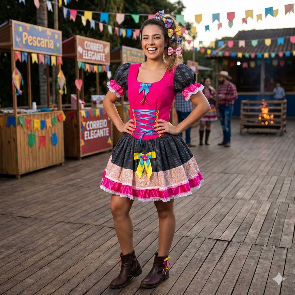 Descrição do Produto: Vestido Junino Super Luxo Marcela Trançado