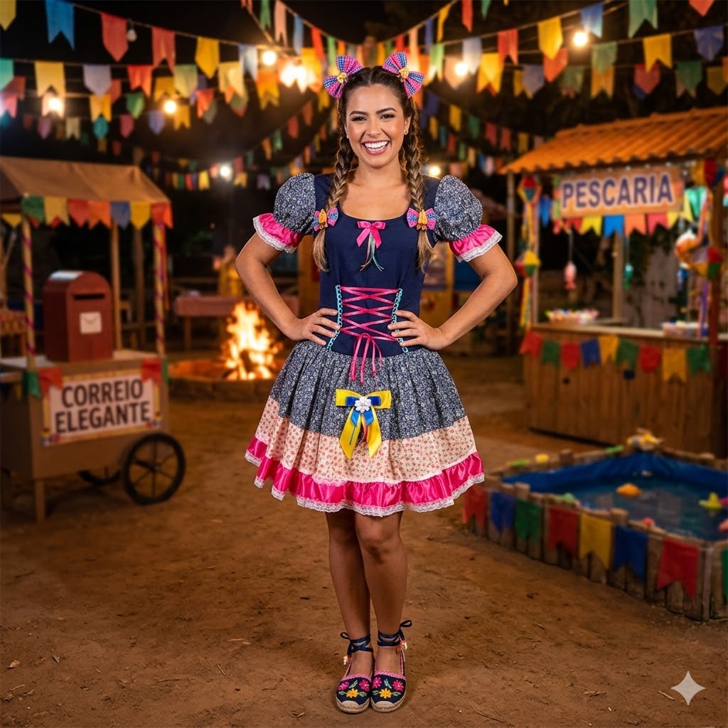 Descrição do Produto: Vestido Junino Super Luxo Raquel Trançado
